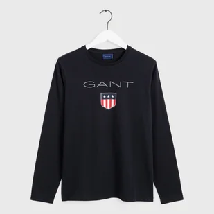 GANT Męski t-shirt REG Shield LS, czarny, standardowy, czarny, L