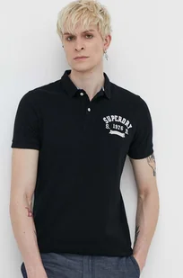 Superdry polo bawełniane kolor czarny z aplikacją