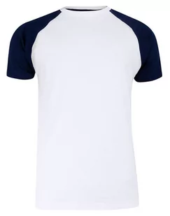 T-shirt Biało-Granatowy Bawełniany, Krótki Rękaw Raglanowy, Dwukolorowy, Męski -BRAVE SOUL
