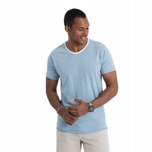 T-shirt męski 100% bawełna niebieski V4 OM-TSCT-22SS-004 S T-shirt męski z surowym wykończeniem – niebieski V4 OM-TSCT-22SS-004 S Ten bawełniany t-shirt pows...