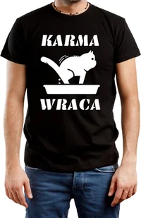 T-SHIRT MĘSKI BUDDYZM KARMA KOT KOTY ŚMIESZNA KOSZULKA CZARNA R-M A452