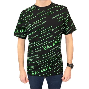 T-shirt męski czarny okrągły dekolt napis zielony balance M