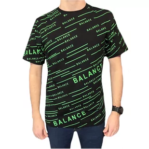 T-shirt męski czarny okrągły dekolt napis zielony balance XXL