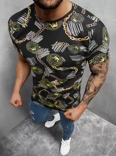 T-SHIRT MĘSKI Z NAJNOWSZEJ KOLEKCJI, KOSZULKA POSIADA OKRĄGŁY DEKOLT TYPU U-NECK, NADRUK Z PRZODU I Z TYŁU, MATERIAŁ: 100% BAWEŁNA, MODEL (183 CM, 80 KG) MA NA SOBIE ROZMIAR L.