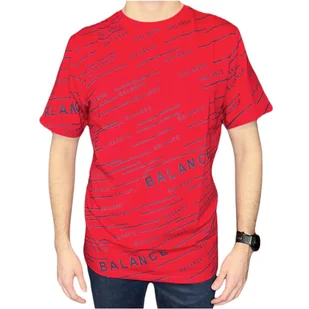 T-shirt męski czerwony okrągły dekolt napis granatowy balance M