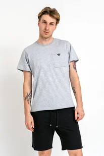 T-shirt męski gładki z kieszonką WILLIAM szary w paski