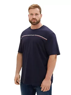 T-shirt męski plus size TOM TAILOR z nadrukiem w paski i logo, 10668-niebieski kapitan nieba, 3XL