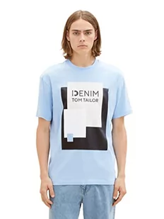 T-shirt męski TOM TAILOR Denim o luźnym kroju z bawełnianym nadrukiem, 32245-wyblakły średni niebieski, M