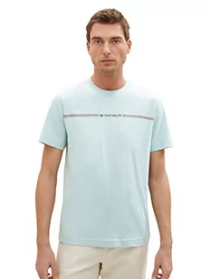 T-shirt męski TOM TAILOR z nadrukiem w paski i logo, 30463-zgaszony miętowy błękit, M