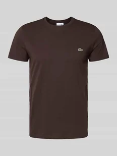 T-shirt męski Lacoste;Model ‘Supima’;Efekt: jednolity kolor;Krój: Krój regular fit ;Aplikacja: Aplikacja z logo;Dekolt: Okrągły dekolt;Rękaw:
