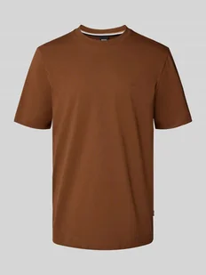 T-shirt męski BOSS;Model ‘Thompson 01’;Efekt: jednolity kolor;Krój: Krój regular fit ;Aplikacja: gumowany nadruk z logo;Dekolt: Okrągły dekolt;Rękaw: