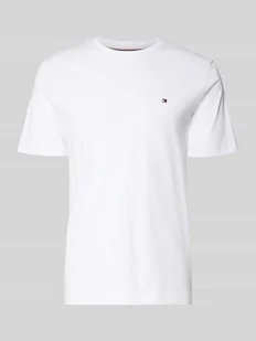 T-shirt męski Tommy Hilfiger;Efekt: jednolity kolor;Krój: Krój regular fit ;Aplikacja: Detal z logo;Dekolt: Okrągły dekolt;Rękaw: krótki;Zakończenia rękawów: proste;Wykończenie materiału: Interlook;Materiał: czysta bawełna