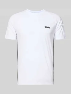 T-shirt męski BOSS Green;Model ‘Top Spin CB’;Efekt: jednolity kolor;Krój: Krój slim fit;Aplikacja: Nadruk z logo, wyhaftowane logo, taśma z logo;Dekolt: Okrągły dekolt;Rękaw: krótki