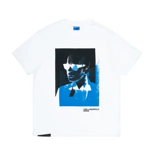 Una stampa che non passa inosservata e rende omaggio al leggendario Karl Lagerfeld occupa il centro della scena in questa audace T-shirt. Con un classico gir...
