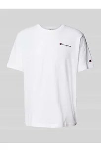 T-shirt męski Champion;Czysta bawełna;Prosty krój;Okrągły dekolt;Nadruk z logo;Wyhaftowane logo;Długość tyłu w rozmiarze M: 64 cm