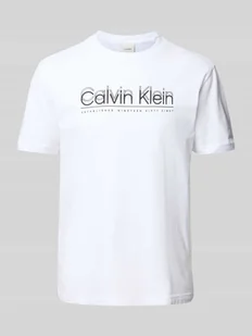 T-shirt męski CK Calvin Klein;Czysta bawełna;Krój regular fit;Okrągły dekolt z prążkowanego ściągacza;Nadruk z logo;Długość tyłu w rozmiarze M: 70 cm