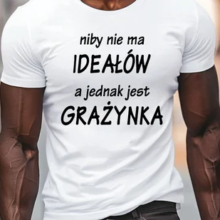 TEMU Męska Casualowa Koszulka z Okrągłym Dekoltem - " nie ma ma Idealow a jednak jest " Polski Nadruk, Lekka Letnia Koszulka, Regularny Krój, Krótki
