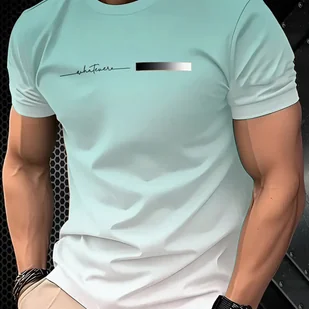 TEMU Męska koszulka z krótkim rękawem w gradient od białego do beżowego - Casual letnia okrągła szyja, nadrukowane litery na piersi, oddychający