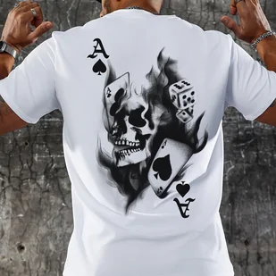 TEMU Męska Koszulka Z Nadrukiem Pokera, Swobodna Koszulka Z Krótkim Rękawem I Okrągłym Dekoltem, Odzież Męska Na Zewnątrz