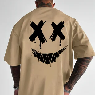 TEMU Męska T-shirt z okrągłym dekoltem i nadrukiem uśmiechu zła, poliestrowa tkanina z dzianiny, lekka i wygodna, letnia odzież uliczna, luźny krój z