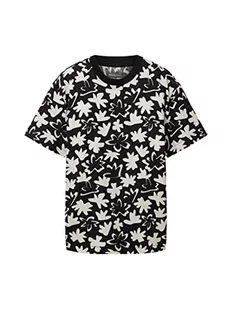 TOM TAILOR Denim Męski T-shirt z nadrukiem kwiatowym, 31906 - Black White Wildflower Print, L