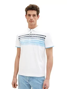 TOM TAILOR Męska koszulka polo z nadrukiem w paski, 20000 – biały, 3XL