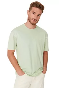 Trendyol Męska koszulka męska bardziej zrównoważona zrelaksowana standardowa dzianinowa koszulka z okrągłym dekoltem, miętowa, XS, Miętowy, XS