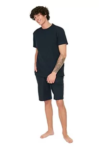Trendyol Męska koszulka męska, gładka, tkana koszulka, krótki zestaw, granatowy, XL, granatowy, XL