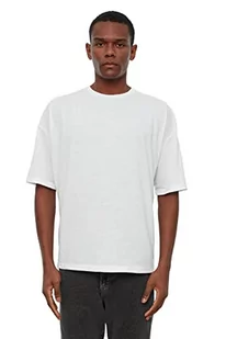 TRENDYOL Męski t-shirt oversized basic, okrągły dekolt, dzianina, biały, S