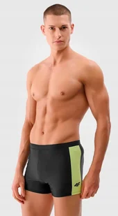 Męskie spodenki kąpielówki 4F Marka/model: 4F SS25-SWTM044 Kolor: Czarno-limonkowe Materiał: 80% poliamid, 20% elastan Podszewka: 100% poliester Higieniczna wkładka w przedniej części Sznurek i gumka w pasie O marce: