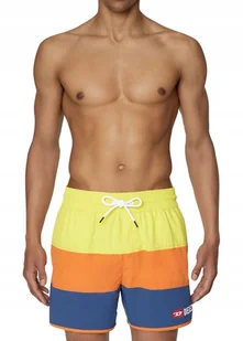 marka: Diesel opis: kąpielówki kolor: żółty/pomarańczowy/granatowy rozmiar: L wymiary: szerokość w pasie bez rozciągania 39 cm, długość 39,5 cm, nogawka na d...