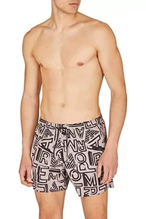 Emporio Armani Swimwear Męskie bokserki kąpielowe Emporio Armani Graphic Patterns, kolor piaskowy/czarny, 46, piaskowy/czarny.