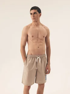 Kąpielówki Orlando Henderson to must-have dla każdego mężczyzny, który szuka komfortu połączonego z modnym wyglądem. Wykonane z lekkiego materiału z dziurkami, zapewniają odpowiednią przewiewność i wygodę podczas upalnych dni. Luźny krój i kieszenie sprawiają, że te szorty kąpielowe są idealnym wyborem na plażę czy basen. Dzięki wiązaniu w pasie, kąpielówki Orlando zapewniają doskonałe dopasowanie do sylwetki, a subtelne logo H na nogawce dodaje im eleganckiego charakteru. Beżowy kolor świetnie komponuje się z letnimi akcentami, a materiał gwarantuje trwałość i komfort przez cały dzień.