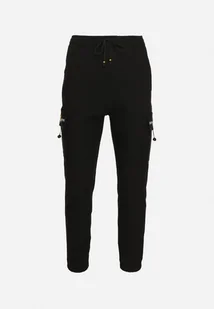 Czarne Spodnie Cargo z Bawełną Ozdobione Napisem i Gumką w Pasie Tarionna