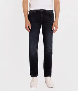 Męskie jeansy o fasonie comfort slim. To typ jeansów o lekko dopasowanych, ale nie obcisłych nogawkach. Nowoczesny fason nadaje temu modelowi charakteru.Zapi...