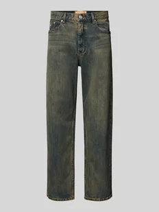Jeansy męskie REVIEW;Czysta bawełna;Krój baggy fit;5 kieszeni;Zapięcie na guzik i zamek błyskawiczny;Detal z logo;Szerokość w pasie w rozmiarze 32: 44 cm;Długość wewnętrzna nogawki w rozmiarze 32: 77 cm