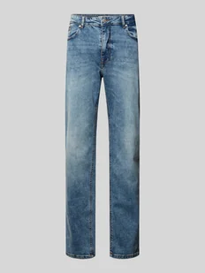 Jeansy męskie REVIEW;Mieszanka bawełny i elastanu;Krój slim fit;5 kieszeni;Zapięcie na guzik i zamek błyskawiczny;Szerokość w pasie w rozmiarze 32/32: 44 cm;Długość wewnętrzna nogawki w rozmiarze 32/32: 78 cm
