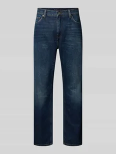 Jeansy o kroju straight fit męskie Tommy Hilfiger;Efekt: Melanż;Krój: Krój regular fit ;Krój wg producenta: Prosta nogawka, krój regular fit;Aplikacja: Naszywka z logo, wyhaftowane logo;Detale: