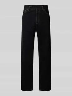 Jeansy o kroju straight leg męskie;Carhartt Work In Progress;Czysta bawełna;Prosty krój;Model ‘AARON’;5 kieszeni;Zapięcie na guzik i zamek błyskawiczny;Szerokość w pasie w rozmiarze 32: 45 cm;Długość wewnętrzna nogawki w rozmiarze 32: 80 cm