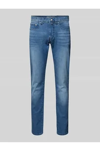 Jeansy męskie Pierre Cardin;Mieszanka bawełny z bawełną ekologiczną i dodatkiem streczu;Krój tapered fit;Zapięcie na guzik i zamek błyskawiczny;5 kieszeni;Naszywka z logo w pasie;Technologia Futureflex;Długość wewnętrzna nogawki w rozmiarze 32/32: 82 cm;Szerokość w pasie w rozmiarze 32/32: 78 cm