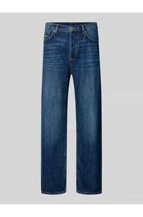 Jeansy o luźnym kroju męskie Pepe Jeans;Model Bexley;Efekt: Melanż;Krój: Krój loose fit;Aplikacja: Naszywka z logo, haft z logo, nity;Detale: Szwy w kontrastowym kolorze, szlufki na pasek;Zapięcie: