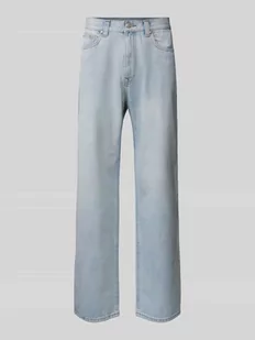 Jeansy męskie REVIEW;Mieszanka bawełny z dodatkiem wiskozy;Krój straight fit;5 kieszeni;Zapięcie na guzik i zamek błyskawiczny;Detal z logo;Szerokość w pasie w rozmiarze 32: 42 cm;Długość wewnętrzna nogawki w rozmiarze 32: 78 cm