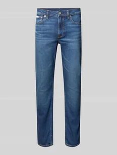 Jeansy męskie Calvin Klein Jeans;Mieszanka bawełny i elastanu;Krój slim fit;5 kieszeni;Zapięcie na guzik i zamek błyskawiczny;Detal z logo;Szerokość w pasie w rozmiarze 32/32: 41 cm;Długość wewnętrzna nogawki w rozmiarze 32/32: 80 cm