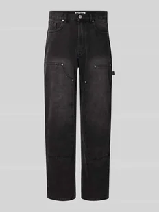 Jeansy męskie REVIEW;Mieszanka bawełny;Luźny krój;5 kieszeni;Zapięcie na guzik i zamek błyskawiczny;Nakładane wpuszczane kieszenie;Szerokość w pasie w rozmiarze 32: 42 cm;Długość wewnętrzna nogawki w rozmiarze 32: 78 cm