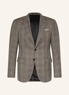 Krój wg producenta: slim fit. Klapy otwarte z butonierką. Spód kołnierza z filcowym obszyciem. Poduszki na ramionach. Jednorzędówka z dwoma guzikami.