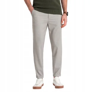 Męskie spodnie chino REGULAR FIT z gumką - szaro-beżowe V1 OM-PACP-0157 S Jednokolorowe spodnie chino z podwiniętymi nogawkami wprowadzą do garderoby nutkę k...