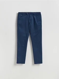Spodnie typu chino o dopasowanym kroju, wykonane z tkaniny z bawełną.
