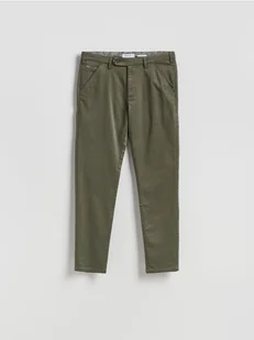 Spodnie typu chino o dopasowanym kroju, wykonane z tkaniny z bawełną.