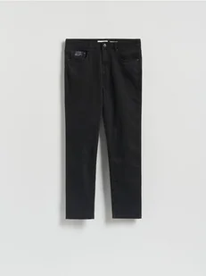 Spodnie o dopasowanym kroju, wykonane z tkaniny z bawełną.