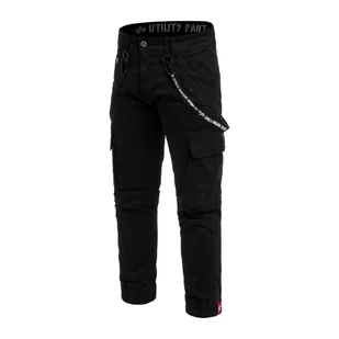 spodnie bojówki ALPHA INDUSTRIES - UTILITY PANT BLACK Alpha Industries to świetny towarzysz codziennego życia. Model odpowiedni na każdą okazję. Firma Alpha Industries przykłada niezwykłą wagę do jakości wykonania swoich produktów. Spodnie są zawsze pieczołowicie wykończone. Model UTILITY PANTS posiada osiem kieszeni w tym dwie duże pojemne kieszenie typu cargo zapinane na zatrzaski.